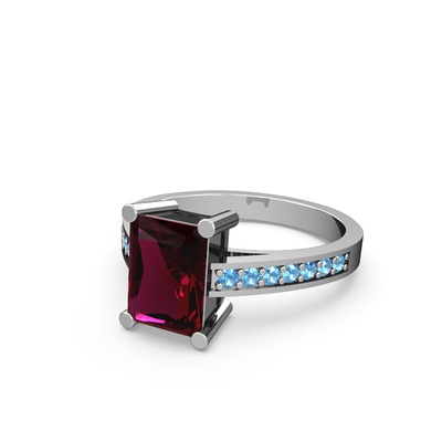 Rodolit garnet ve akuamarin 8 ayar beyaz altın yüzük