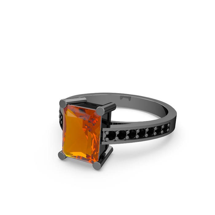 Sitrin ve siyah zirkon 925 ayar siyah rodyum kaplama gümüş yüzük