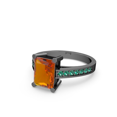 Sitrin ve yeşil kuvars 925 ayar siyah rodyum kaplama gümüş yüzük