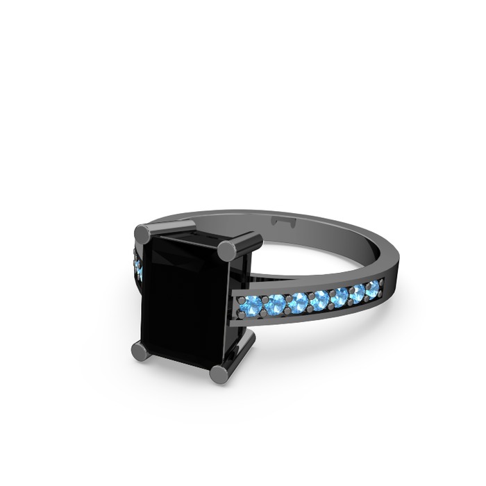 Siyah zirkon ve akuamarin 925 ayar siyah rodyum kaplama gümüş yüzük