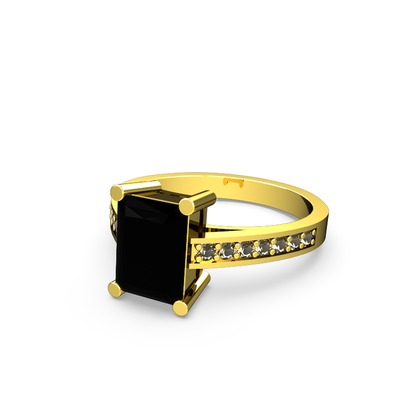 Siyah zirkon ve dumanlı kuvars 14 ayar altın yüzük