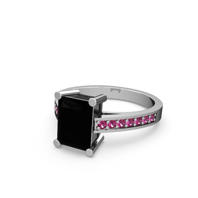 Siyah zirkon ve rodolit garnet 18 ayar beyaz altın yüzük