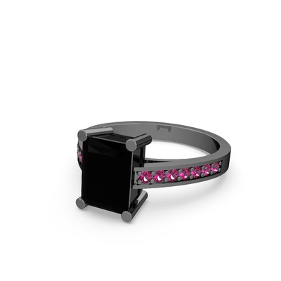 Siyah zirkon ve rodolit garnet 925 ayar siyah rodyum kaplama gümüş yüzük