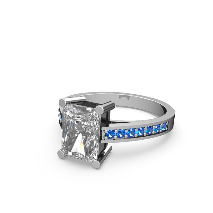 Swarovski ve lab safir 14 ayar beyaz altın yüzük