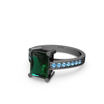 Yeşil kuvars ve akuamarin 925 ayar siyah rodyum kaplama gümüş yüzük