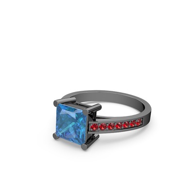 Akuamarin ve garnet 925 ayar siyah rodyum kaplama gümüş yüzük
