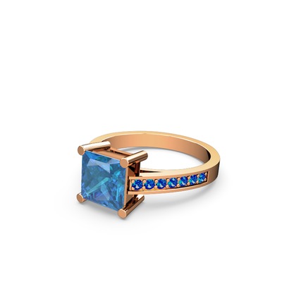 Akuamarin ve lab safir 14 ayar rose altın yüzük