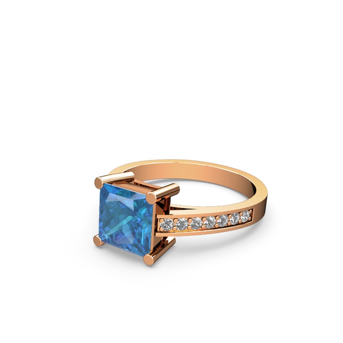 Akuamarin ve pırlanta 14 ayar rose altın yüzük (0.21 karat)