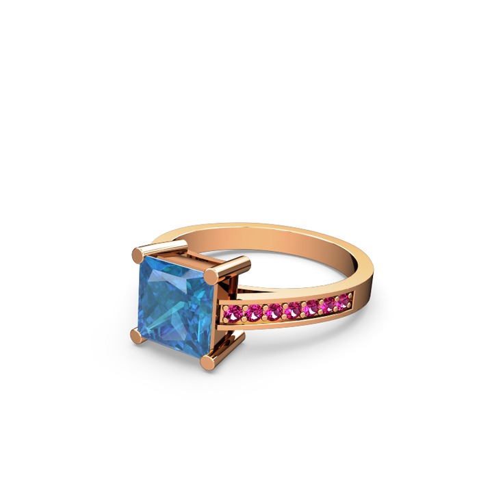 Akuamarin ve rodolit garnet 925 ayar rose altın kaplama gümüş yüzük