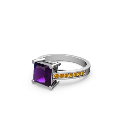 Ametist ve sitrin 18 ayar beyaz altın yüzük