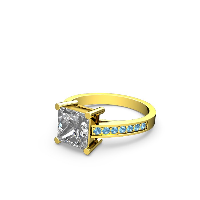 Beyaz zirkon ve akuamarin 925 ayar altın kaplama gümüş yüzük