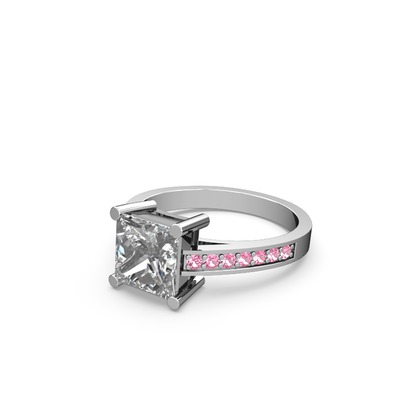Beyaz zirkon ve pembe kuvars 18 ayar beyaz altın yüzük