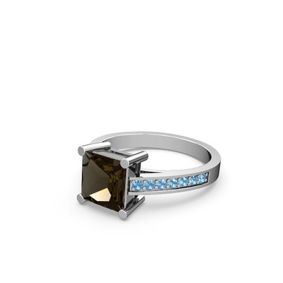 Dumanlı kuvars ve akuamarin 14 ayar beyaz altın yüzük