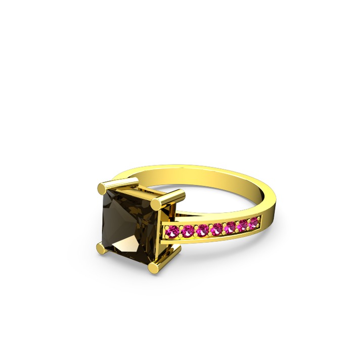 Dumanlı kuvars ve rodolit garnet 925 ayar altın kaplama gümüş yüzük