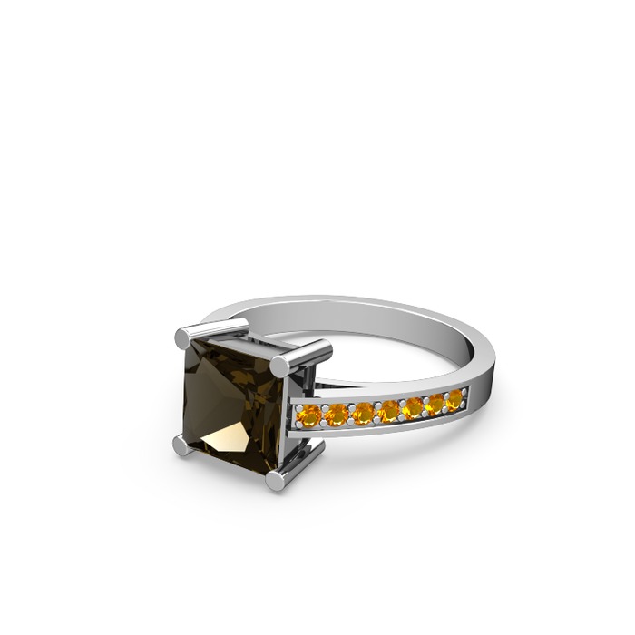 Dumanlı kuvars ve sitrin 14 ayar beyaz altın yüzük