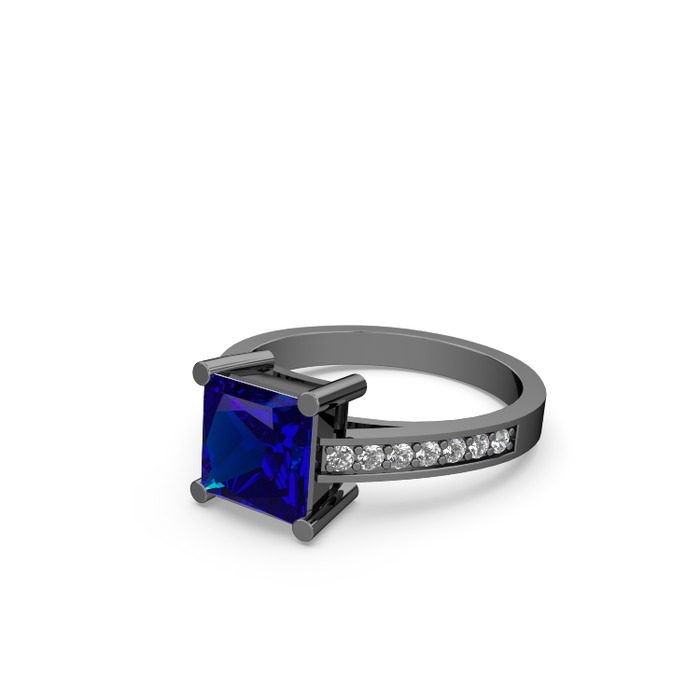 Lab safir ve beyaz zirkon 925 ayar siyah rodyum kaplama gümüş yüzük
