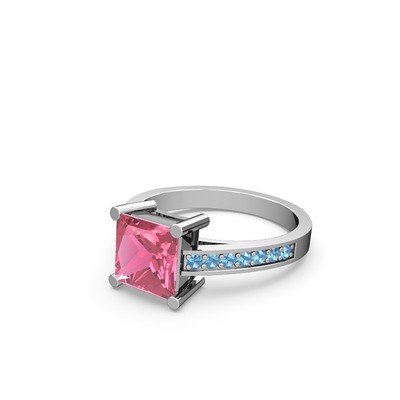 Pembe kuvars ve akuamarin 8 ayar beyaz altın yüzük