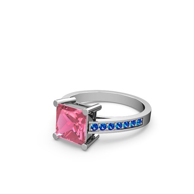 Pembe kuvars ve lab safir 14 ayar beyaz altın yüzük
