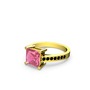 Pembe kuvars ve siyah zirkon 18 ayar altın yüzük