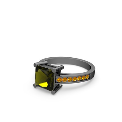 Peridot ve sitrin 925 ayar siyah rodyum kaplama gümüş yüzük
