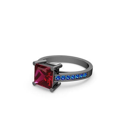 Rodolit garnet ve lab safir 925 ayar siyah rodyum kaplama gümüş yüzük