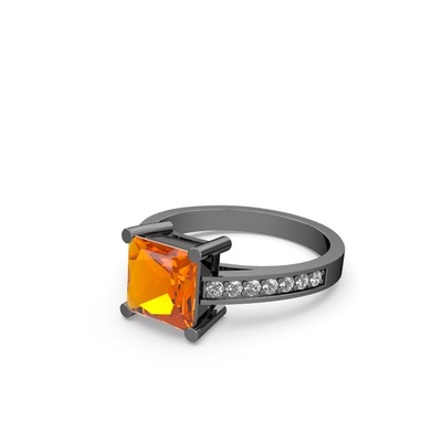 Sitrin ve pırlanta 925 ayar siyah rodyum kaplama gümüş yüzük (0.21 karat)