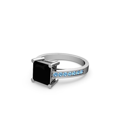 Siyah zirkon ve akuamarin 18 ayar beyaz altın yüzük