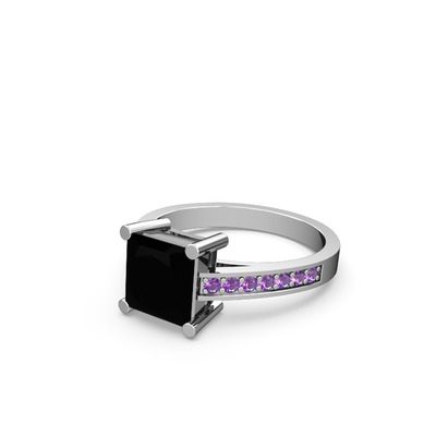 Siyah zirkon ve ametist 18 ayar beyaz altın yüzük
