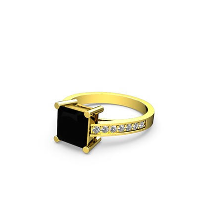 Siyah zirkon ve pırlanta 8 ayar altın yüzük (0.21 karat)