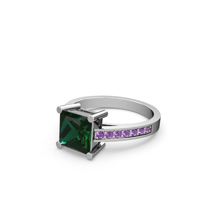 Yeşil kuvars ve ametist 14 ayar beyaz altın yüzük