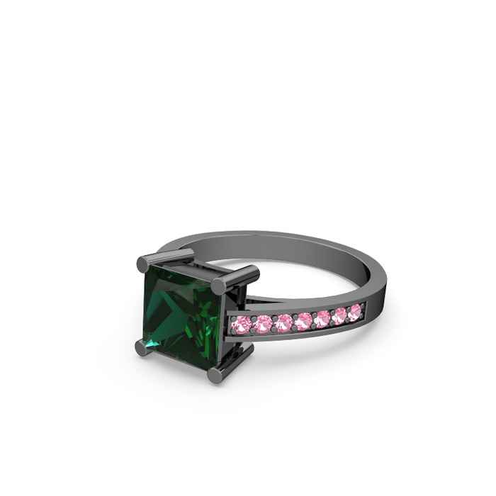 Yeşil kuvars ve pembe kuvars 925 ayar siyah rodyum kaplama gümüş yüzük