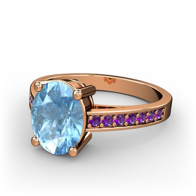 Akuamarin ve ametist 18 ayar rose altın yüzük