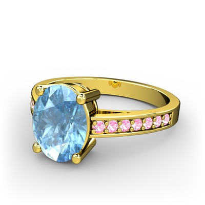 Akuamarin ve pembe kuvars 14 ayar altın yüzük