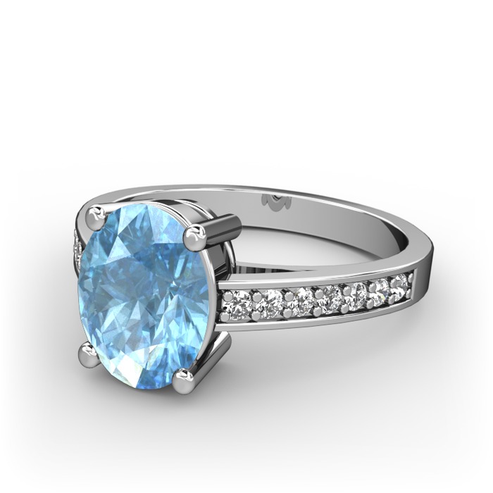 Akuamarin ve pırlanta 18 ayar beyaz altın yüzük (0.21 karat)