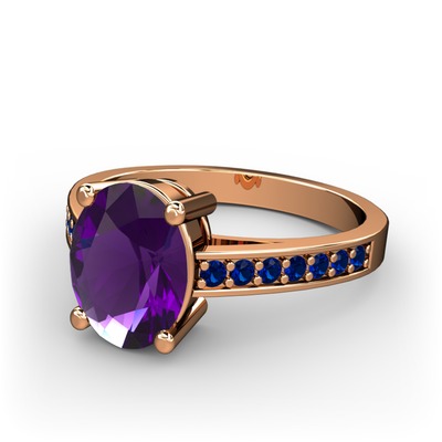 Ametist ve lab safir 14 ayar rose altın yüzük