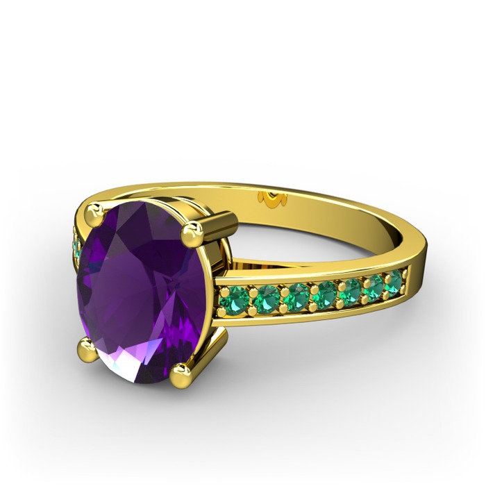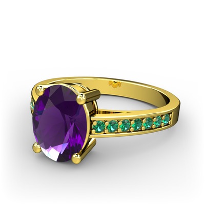 Ametist ve yeşil kuvars 14 ayar altın yüzük