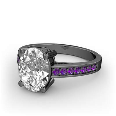 Beyaz zirkon ve ametist 925 ayar siyah rodyum kaplama gümüş yüzük