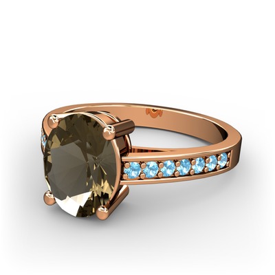 Dumanlı kuvars ve akuamarin 18 ayar rose altın yüzük