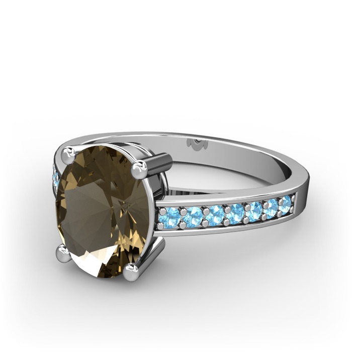 Dumanlı kuvars ve akuamarin 925 ayar gümüş yüzük