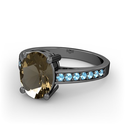Dumanlı kuvars ve akuamarin 925 ayar siyah rodyum kaplama gümüş yüzük