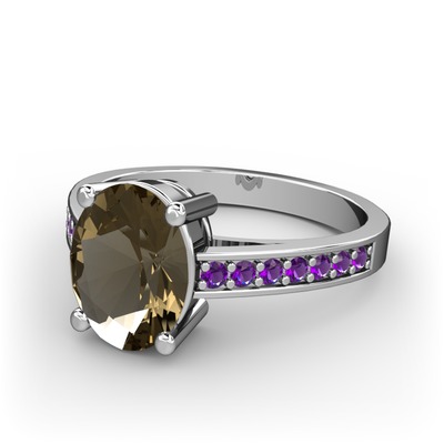Dumanlı kuvars ve ametist 8 ayar beyaz altın yüzük