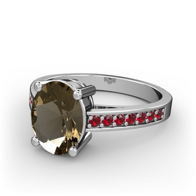 Dumanlı kuvars ve garnet 8 ayar beyaz altın yüzük