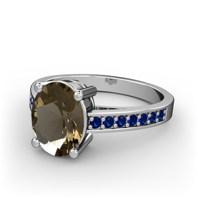 Dumanlı kuvars ve lab safir 18 ayar beyaz altın yüzük