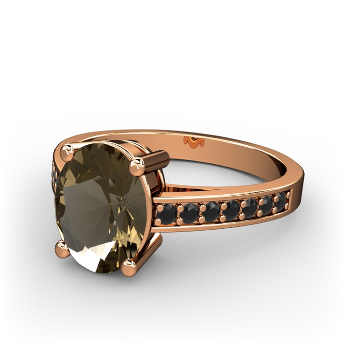 Dumanlı kuvars ve siyah zirkon 925 ayar rose altın kaplama gümüş yüzük