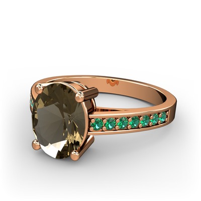 Dumanlı kuvars ve yeşil kuvars 14 ayar rose altın yüzük
