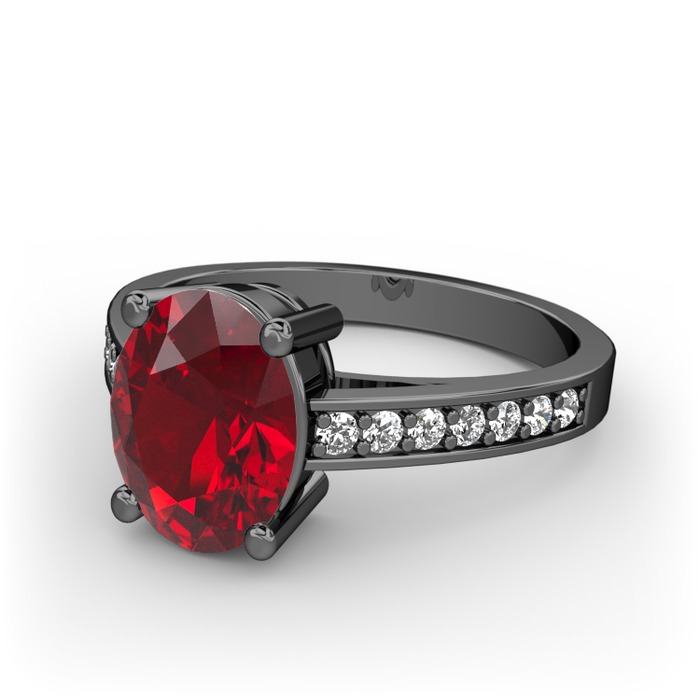 Garnet ve beyaz zirkon 925 ayar siyah rodyum kaplama gümüş yüzük
