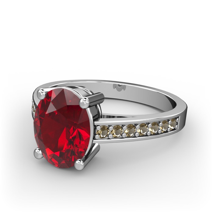 Garnet ve dumanlı kuvars 8 ayar beyaz altın yüzük