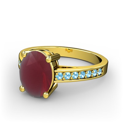 Kök yakut ve akuamarin 18 ayar altın yüzük