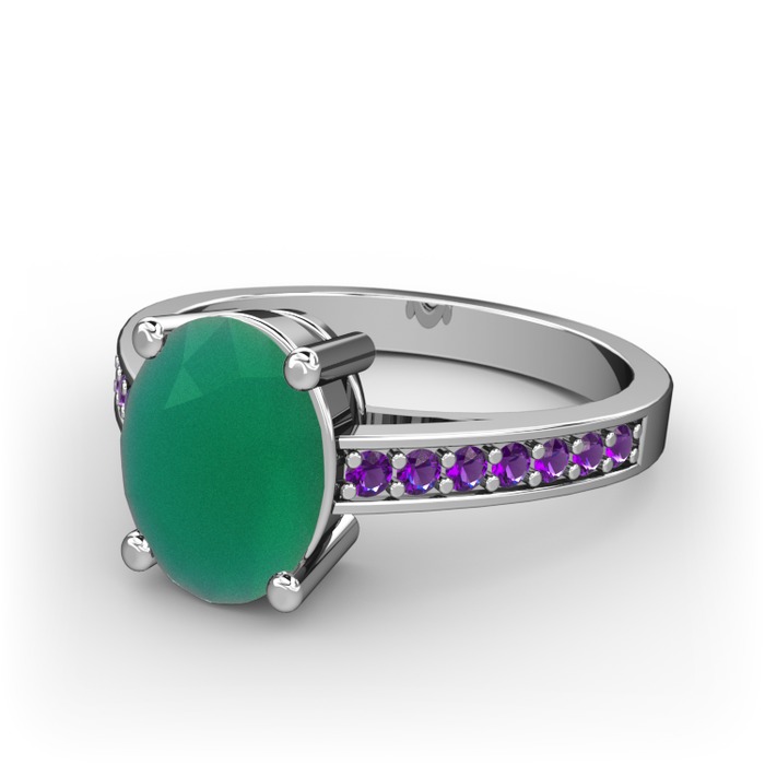Kök zümrüt ve ametist 14 ayar beyaz altın yüzük