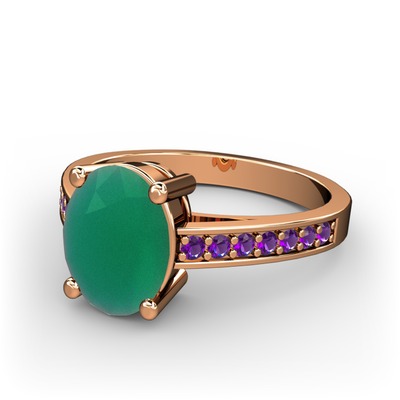Kök zümrüt ve ametist 14 ayar rose altın yüzük